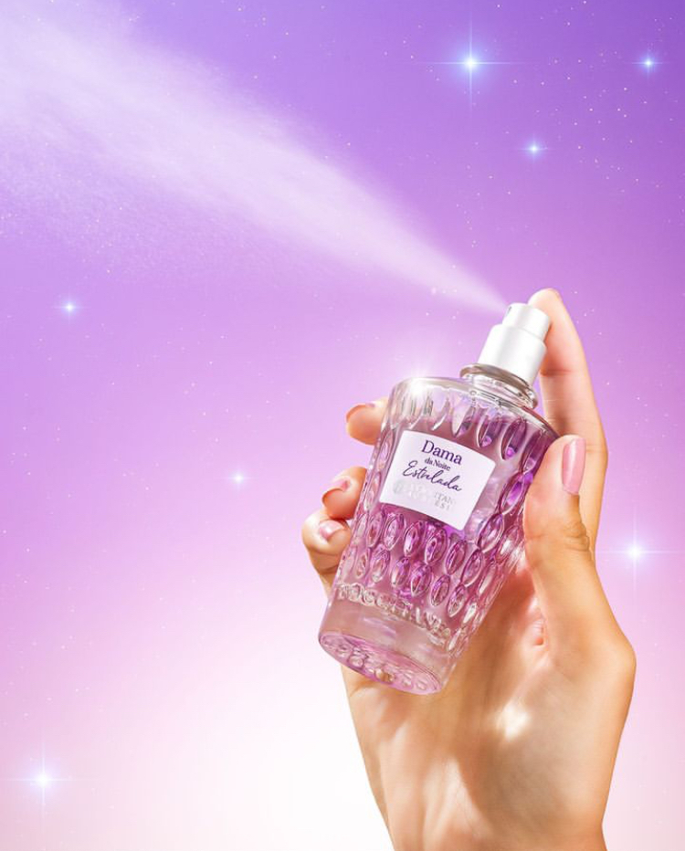 Deo Colônia Dama da Noite Estrelada: Perfuma a pele com uma fragrância floral gourmand.